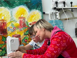 An der Schule am Mummelsoll in Marzahn-Hellersdorf gibt es eine wunderschöne Näh- und Kreativwerkstatt für die Schüler*innen, die von Antje Blankenhagen betrieben wird. Die gelernte Schneiderin und tandem-Mitarbeiterin arbeitet bereits seit 10 Jahren an dem Förderzentrum mit dem Schwerpunkt "Geistige Entwicklung". Seit November ist die Näh- und Kreativwerkstatt in einen großzügigen Raum neben der Schwimmhalle gezogen, dort haben wir Antje Blankenhagen besucht.