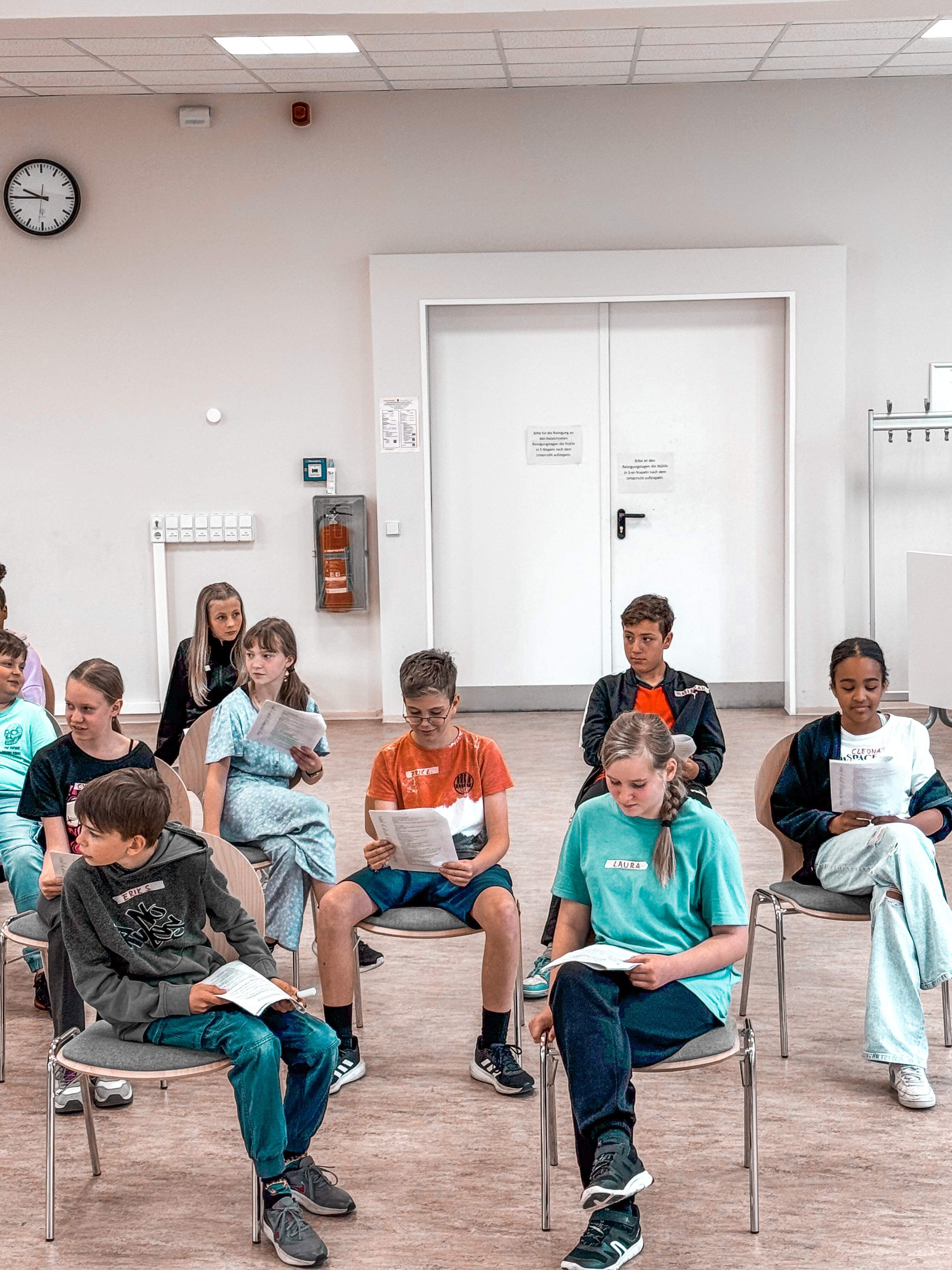 Unter der Anleitung des Projektteams, bestehend aus Wendy Kamp, Sebastian Achilles und Robert Neumann wurden die Rollen sorgfältig verteilt, um sicherzustellen, dass jedes Kind die Möglichkeit hatte, seine*ihre Stärken zu zeigen und sich aktiv in das Projekt einzubringen. Gemeinsam spielten sie eine Klasse, die entdeckt, dass es Konflikte innerhalb der Gruppe gibt und diese Ungerechtigkeiten aufarbeitet. Dadurch wurde den Schüler*innen nicht nur theoretisches Wissen vermittelt, sondern auch praktische Handlungsmöglichkeiten aufgezeigt, die sie selbst in ihren Alltag integrieren können.