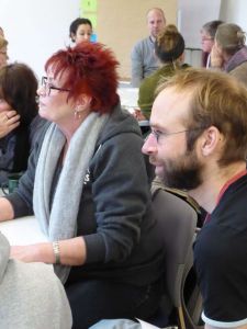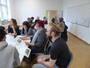 In intensiven Gruppenarbeiten konnten die Mitarbeiter*innen schließlich gemeinsam die Wirkungstreppe Stufe für Stufe für ihre Arbeit  nachvollziehen und anhand von Fallbeispielen diskutieren, wie die Elemente der Wirkungsorientierung sinnvoll eingesetzt werden können.